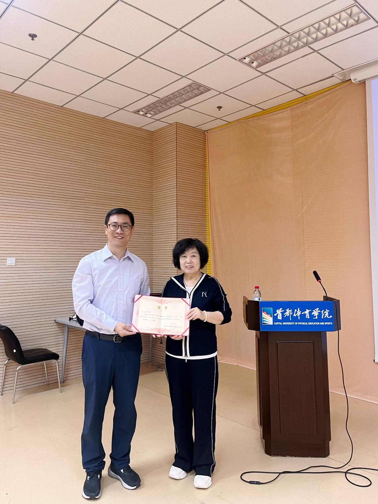 见国繁书记结合临床实际,指出目前国内治疗运动损伤还主要以“头痛医头,脚痛医脚”模式为主,揭示了当前诊疗思路中存在“重局部、轻整体”的理念局限。随后介绍了国内外较先进的脊神经脑神经脑科学应用,为运动损伤诊治提供新视角。讲座内容结束后,现场师生与见国繁书记进行了深入交流与讨论,贺刚院长向见国繁书记的精彩讲授和对学校发展的支持表示感谢,并颁发了讲座证书。