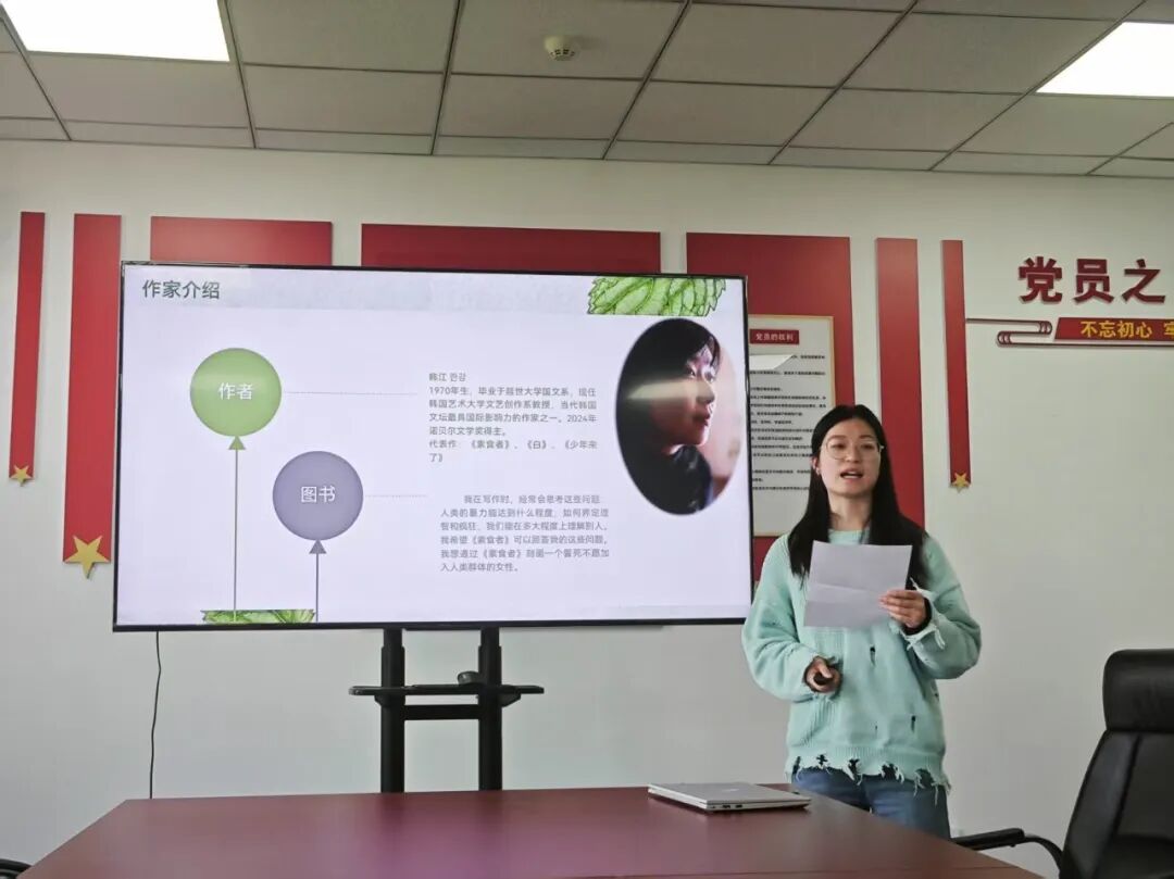 活动在热烈的氛围中拉开帷幕。参赛选手们以书为媒,带领观众开启了一场穿越时空的精神之旅。陈熙同学通过《停止你的内在战争》一书,深刻剖析现代人的心理困境,提出"与自我和解"的生活智慧;王玉娇同学以《且以优雅过一生——杨绛传》为题,生动再现了这位世纪才女的风骨与情怀;赵晓涵与戴雨晴同学则从《素食者》出发,探讨了女性意识觉醒与社会认知的深刻命题。王一菲同学对《活着》的深情讲述,更是引发了在场师生对生命价值的深刻思考。